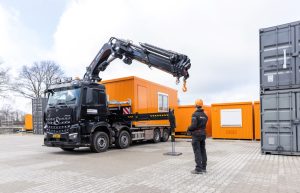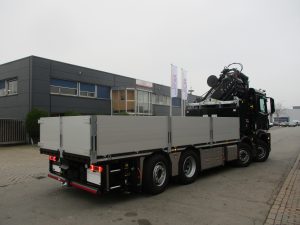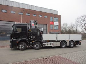 Peters Bouw en Onderhoud heeft hun Mercedes Arocs 8×2 in gebruik genomen. Deze 510PK sterke 8×2 hebben wij mogen voorzien van een W-floor carrosserie met Hiab X-HiPro 858 EP-6 autolaadkraan. Deze onderneming maakt deel uit van Bouwgroep Zuiderbosch en houdt zich hoofdzakelijk bezig met nieuw- en verbouw in de sectoren utiliteitsbouw, woningbouw, betonwerk en verlening van bouwservice. In deze diversiteit komt de autolaadkraan goed van pas. Deze gigant heft op ruim 16 meter nog over de 4 ton. De laadbak is uitgevoerd met rongpotten, sjor-ogen, twistlocks, uitschuifbare breedtesteunen en vele verdere details in uitvoering en positie naar klantwens. De onderbouw uitgevoerd met RVS onderbouwkisten en RVS spatborden. Een veelzijdig inzetbaar voertuig voor een veelzijdige onderneming.