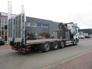 De nieuwe Scania R460 is afgeleverd aan GLENT Group BV. Deze 8×2/6 hebben we mogen voorzien van een HiDuo 258 EP-5 op een rechte oprij-carrosserie. Deze imposante truck heeft met de kraan een hefvermogen van ca. 1200KG op bijna 15 meter. De vlakke laadvloer voorzien van dubbel scharnierende hydraulische oprijbruggen en een lier in het kopschot. Deze combinatie maakt deze wendbare 4-asser breed inzetbaar, wat exact de bedoeling was. GLENT Group BV houdt zich bezig met de casco bouw van datacenters, en zet deze auto onder andere in om materialen en machines te pendelen tussen diverse projecten.