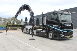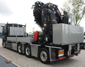 Breed uitgemeten in het nieuws was de aflevering van de nieuwe Volvo FH Aero Electric van Liftcase. Reden genoeg om nogmaals stil te staan bij deze gigant. De W-floor met een Hiab IQ 1188 E-9 met een Jib 155 Q6 komt op 36,2 meter nog op 560KG laadvermogen. In combinatie met de 2 tons lier zou deze kraan elke klus kunnen klaren. Dit 8×4 chassis heeft een wide-spread gestuurde naloopas, waar geruisloos nauw mee gemanoeuvreerd kan worden. Het geheel samenkomend met de W-floor carrosserie met onder andere kastenwand achter de kraan, en kastenwand achter de cabine zorgt alsmede met de RVS onderbouwkisten voor voldoende bergruimte, rondom de kraanvoet een rongen- en stophoutberging, staande ladderberging. Rongpotten, en rongpotrijen in de laadbak, maken de carrosserie helemaal inzetbaar naar klantwens. Een mooi project waar we uiteraard de opdrachtgever dankbaar voor zijn, maar alle samenwerkende partijen.